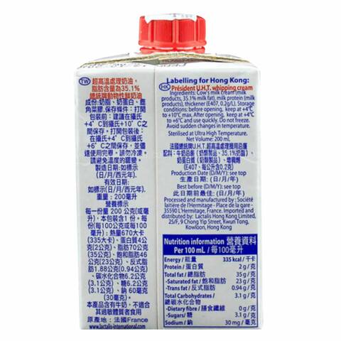 Buy President Full Fat Whipping Cream 200ml Online Shop Fresh Food On Carrefour Uae
